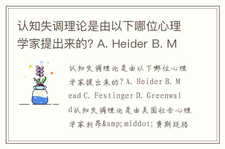 认知失调理论是由以下哪位心理学家提出来的? A. Heider B. Mead C. Festinger D. Greenwald