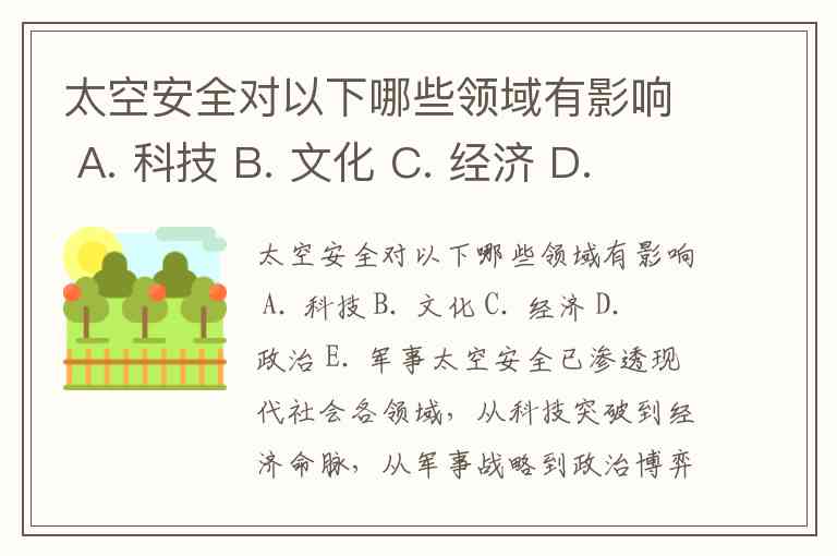 太空安全对以下哪些领域有影响 A. 科技 B. 文化 C. 经济 D. 政治 E. 军事