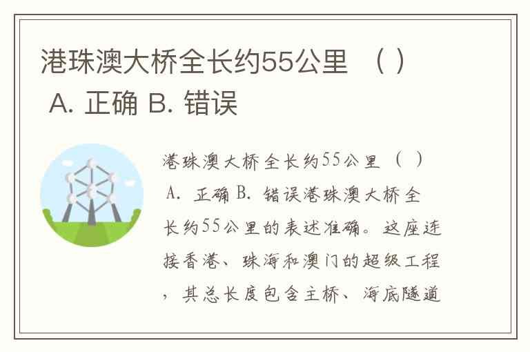 港珠澳大桥全长约55公里 ( ) A. 正确 B. 错误