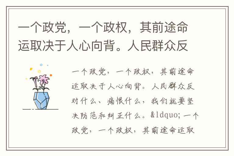 一个政党,一个政权,其前途命运取决于人心向背。人民群众反对什么、痛恨什么,我们就要坚决防范和纠正什么。