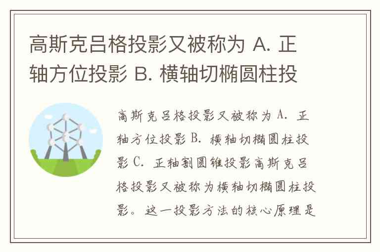 高斯克吕格投影又被称为 A. 正轴方位投影 B. 横轴切椭圆柱投影 C. 正轴割圆锥投影