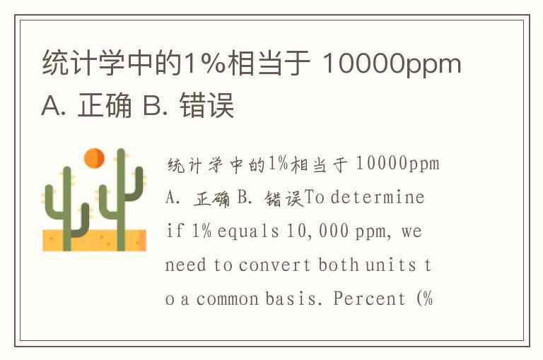 统计学中的1%相当于 10000ppm A. 正确 B. 错误