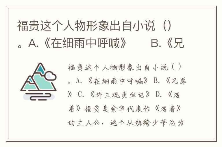 福贵这个人物形象出自小说()。A.《在细雨中呼喊》 B.《兄弟》 C.《许三观卖血记》 D.《活着》