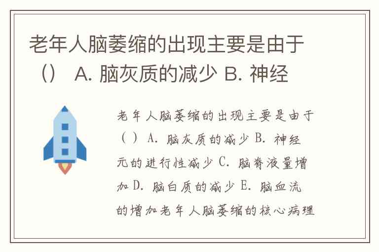 老年人脑萎缩的出现主要是由于() A. 脑灰质的减少 B. 神经元的进行性减少 C. 脑脊液量增加 D. 脑白质的减少 E. 脑血流的增加