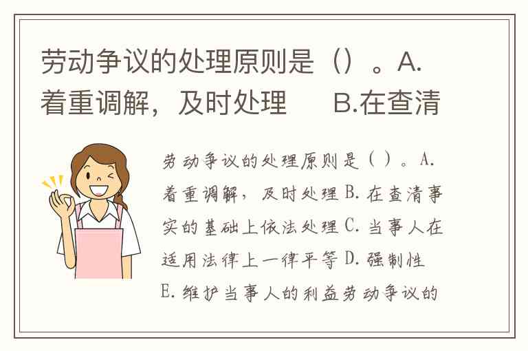 劳动争议的处理原则是()。A.着重调解,及时处理 B.在查清事实的基础上依法处理 C.当事人在适用法律上一律平等 D.强制性 E.维护当事人的利益