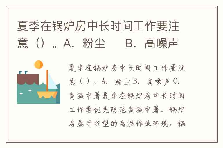 夏季在锅炉房中长时间工作要注意()。A.粉尘 B.高噪声 C.高温中暑