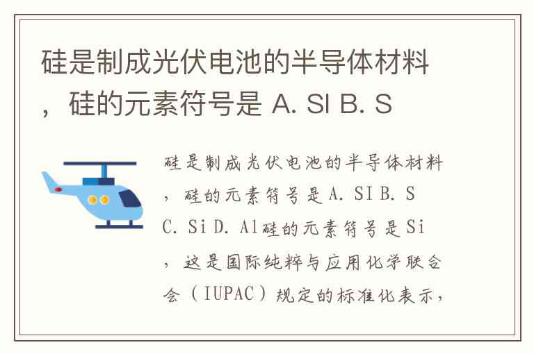 硅是制成光伏电池的半导体材料,硅的元素符号是 A. SI B. S C. Si D. Al