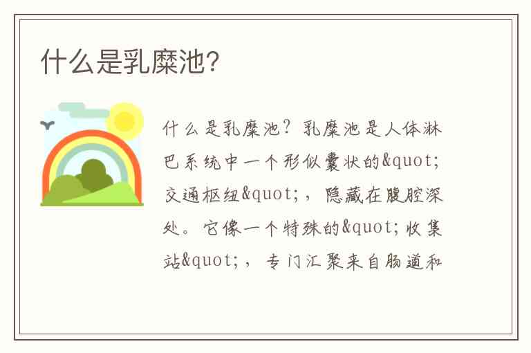 什么是乳糜池?