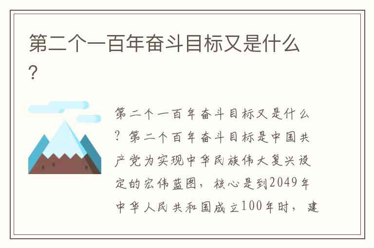第二个百年奋斗目标是中国共产党为实现中华民族伟大复兴设定的宏伟蓝图,核心是到2049年中华人民共和国成立100年时,建成富强、民主、文明、和谐、美丽的社会主义现代化强国。这一目标并非一蹴而就,而是通过“两步走”战略分阶段推进:2035年先基本实现社会主义现代化,再用15年时间冲刺最终目标,比最初规划提前了整整15年。