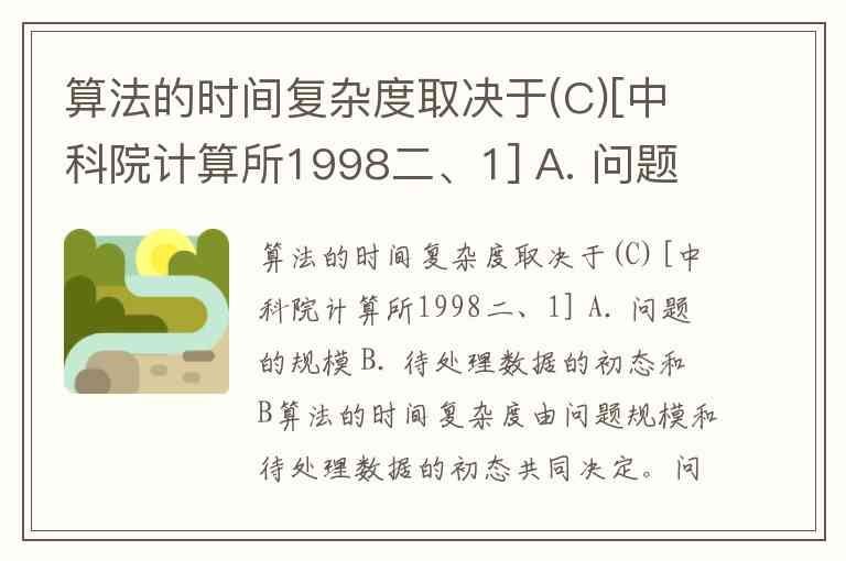 算法的时间复杂度取决于(C)[中科院计算所1998二、1] A. 问题的规模 B. 待处理数据的初态和B
