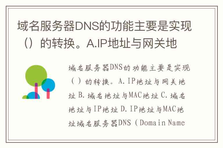 域名服务器DNS的功能主要是实现()的转换。A.IP地址与网关地址 B.域名地址与MAC地址 C.域名地址与IP地址 D.IP地址与MAC地址