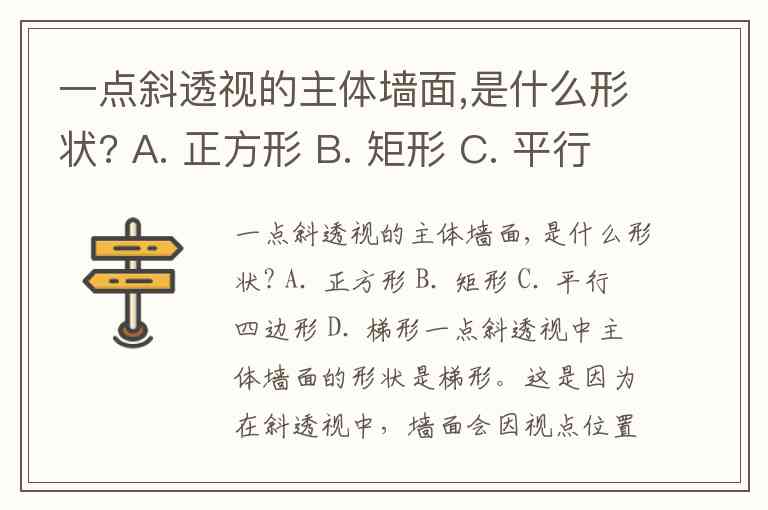 一点斜透视的主体墙面,是什么形状? A. 正方形 B. 矩形 C. 平行四边形 D. 梯形
