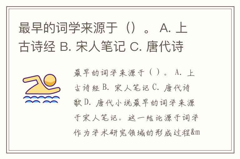 最早的词学来源于()。 A. 上古诗经 B. 宋人笔记 C. 唐代诗歌 D. 唐代小说