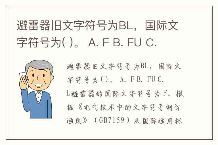 避雷器旧文字符号为BL,国际文字符号为( )。 A. F B. FU C. L