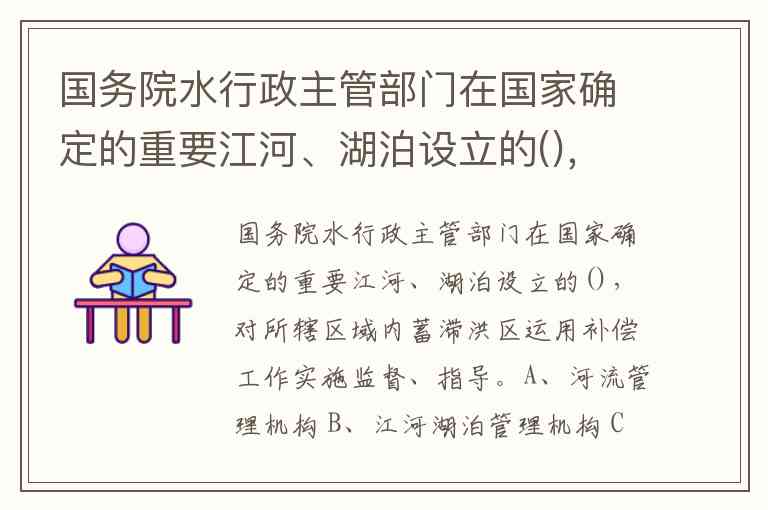 国务院水行政主管部门在国家确定的重要江河、湖泊设立的(),对所辖区域内蓄滞洪区运用补偿工作实施监督、指导。A、河流管理机构 B、江河湖泊管理机构 C、流域管理机构 D、河流湖泊流域管理机构