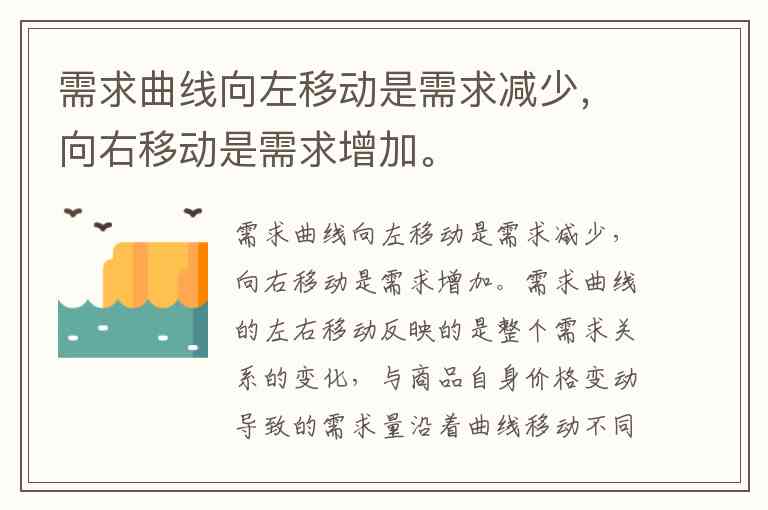 需求曲线向左移动是需求减少,向右移动是需求增加。