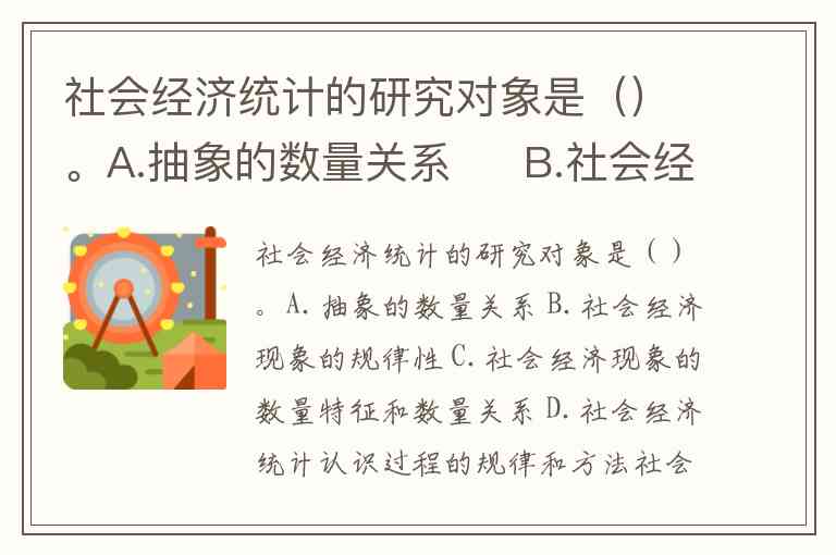 社会经济统计的研究对象是()。A.抽象的数量关系 B.社会经济现象的规律性 C.社会经济现象的数量特征和数量关系 D.社会经济统计认识过程的规律和方法