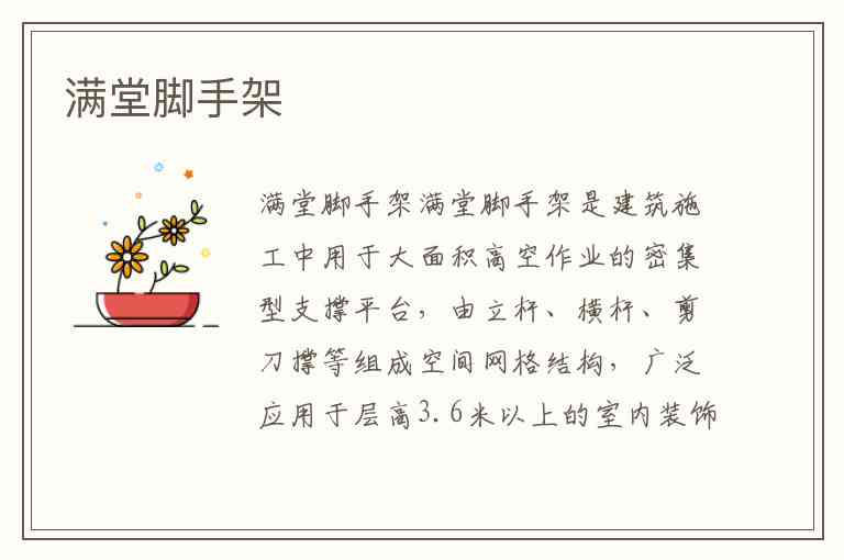 满堂脚手架是建筑施工中用于大面积高空作业的密集型支撑平台,由立杆、横杆、剪刀撑等组成空间网格结构,广泛应用于层高3.6米以上的室内装饰、吊顶安装及大跨度建筑施工。其核心功能是提供稳定操作面,区别于承受混凝土自重的满堂支撑架——最简单的判断方法是:若作业面对象是已成型结构(如吊顶、壁画),则为满堂脚手架;若支撑未凝固混凝土,则为满堂支撑架。