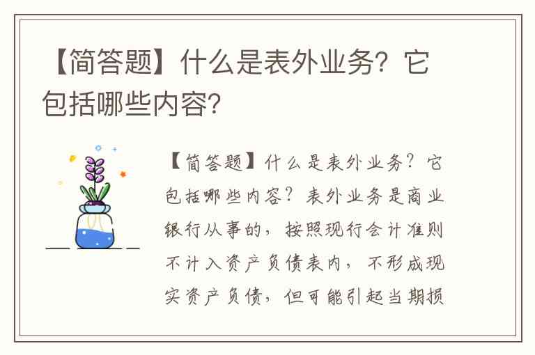 表外业务是商业银行从事的,按照现行会计准则不计入资产负债表内,不形成现实资产负债,但可能引起当期损益变动的业务。这类业务虽不在资产负债表直接体现,却可能通过手续费、佣金等方式为银行带来收入,部分业务在特定条件下还会转化为表内资产或负债,形成“或有资产”或“或有负债”。例如银行承诺在未来提供贷款但尚未实际发放,或为企业开具保函提供信用担保,这类业务初期仅体现为合同约定,不占用银行资金,却可能因客户违约转为实际债权债务。