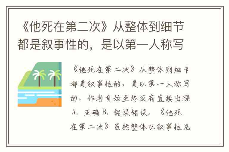 《他死在第二次》从整体到细节都是叙事性的,是以第一人称写的,作者自始至终没有直接出现 A. 正确 B. 错误