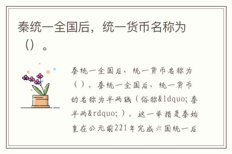 秦统一全国后,统一货币名称为()。