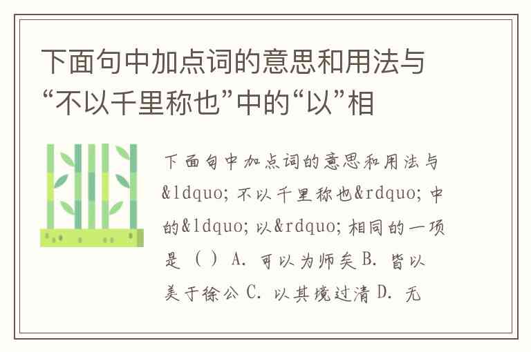 “不以千里称也”出自《马说》,其中“以”是介词,表“凭借、用”,整句意为“不凭借千里马的名声被称道”。要找到用法相同的选项,需分析各句中“以”的词性和含义:
