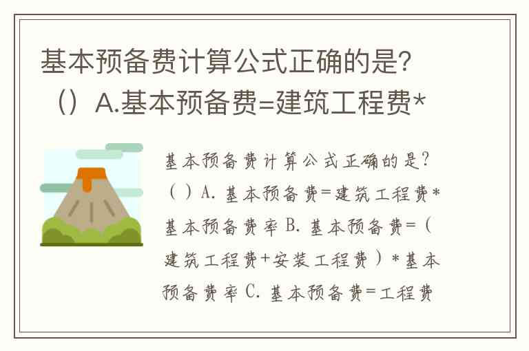 基本预备费计算公式正确的是?()A.基本预备费=建筑工程费*基本预备费率 B.基本预备费=(建筑工程费+安装工程费)*基本预备费率 C.基本预备费=工程费用*基本预备费率 D.基本预备费=(工程费用+工程建设其他费用)*基本预备费率