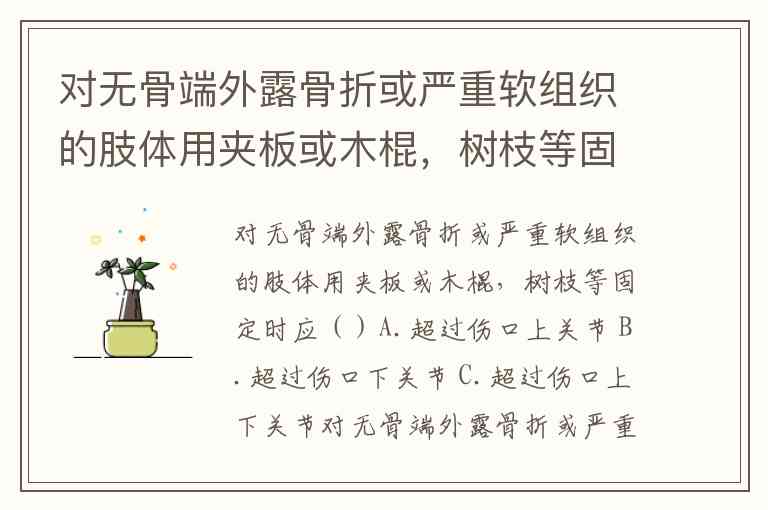 对无骨端外露骨折或严重软组织的肢体用夹板或木棍,树枝等固定时应()A.超过伤口上关节 B.超过伤口下关节 C.超过伤口上下关节