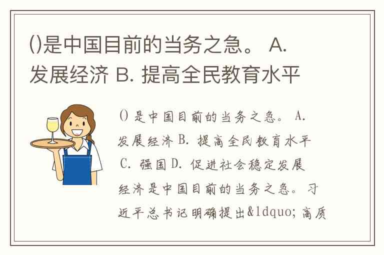 ()是中国目前的当务之急。 A. 发展经济 B. 提高全民教育水平 C. 强国 D. 促进社会稳定