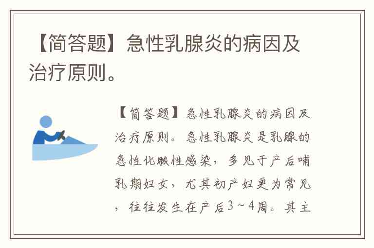 急性乳腺炎是乳腺的急性化脓性感染,多见于产后哺乳期妇女,尤其初产妇更为常见,往往发生在产后3~4周。其主要病因包括乳汁淤积和细菌入侵两大因素,两者相互作用导致感染发生。