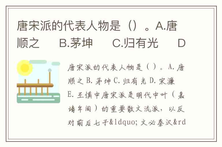 唐宋派的代表人物是()。A.唐顺之 B.茅坤 C.归有光 D.宋濂 E.王慎中