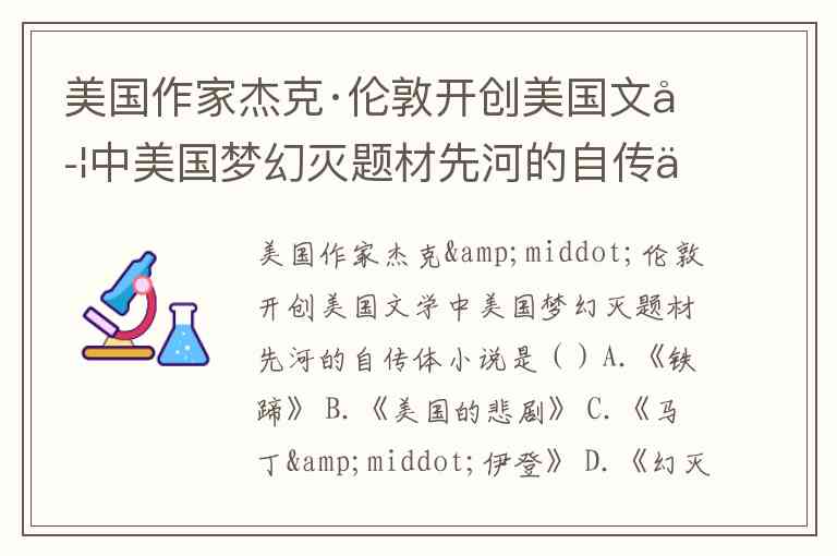 美国作家杰克·伦敦开创美国文学中美国梦幻灭题材先河的自传体小说是()A.《铁蹄》 B.《美国的悲剧》 C.《马丁·伊登》 D.《幻灭》