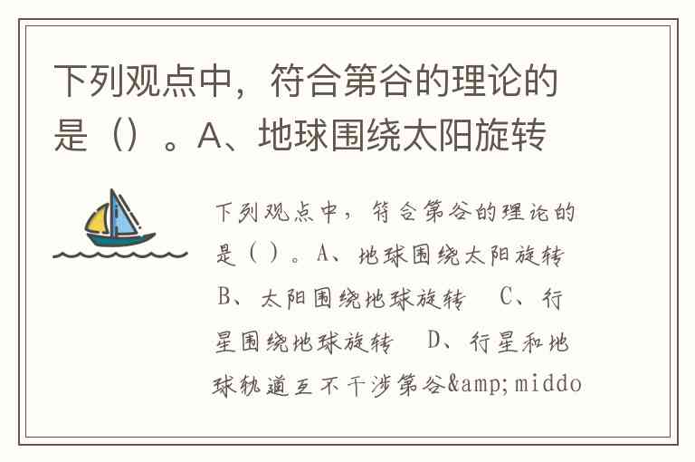 下列观点中,符合第谷的理论的是()。A、地球围绕太阳旋转 B、太阳围绕地球旋转 C、行星围绕地球旋转 D、行星和地球轨道互不干涉