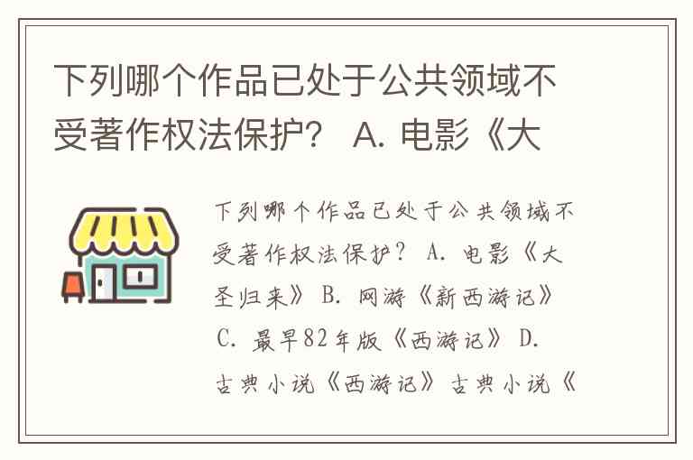 下列哪个作品已处于公共领域不受著作权法保护? A. 电影《大圣归来》 B. 网游《新西游记》 C. 最早82年版《西游记》 D. 古典小说《西游记》