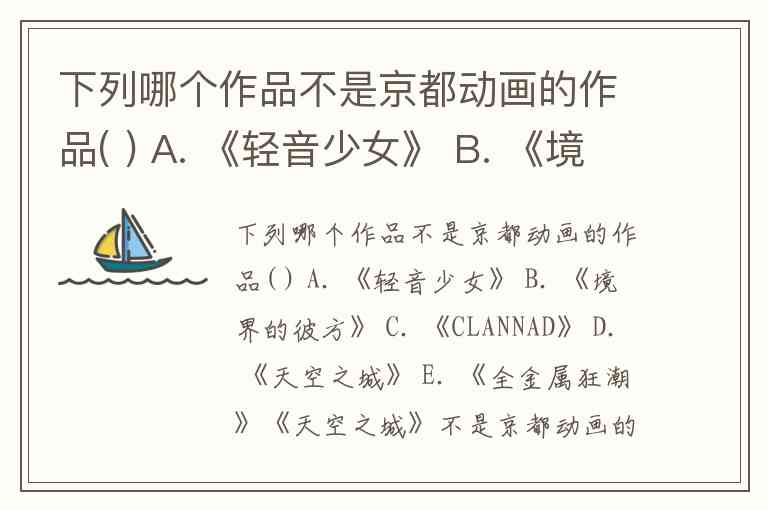 下列哪个作品不是京都动画的作品( ) A. 《轻音少女》 B. 《境界的彼方》 C. 《CLANNAD》 D. 《天空之城》 E. 《全金属狂潮》