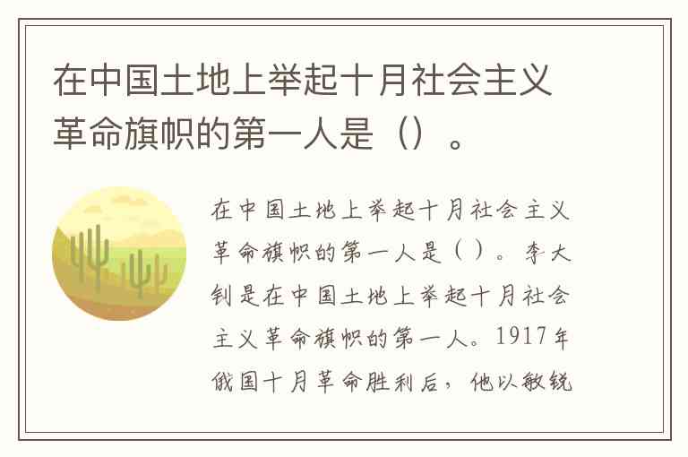 在中国土地上举起十月社会主义革命旗帜的第一人是()。