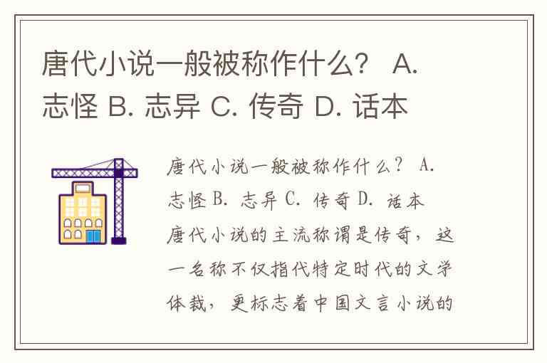 唐代小说一般被称作什么? A. 志怪 B. 志异 C. 传奇 D. 话本