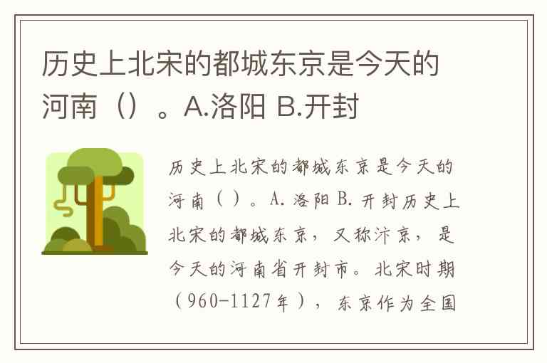 历史上北宋的都城东京是今天的河南()。A.洛阳 B.开封