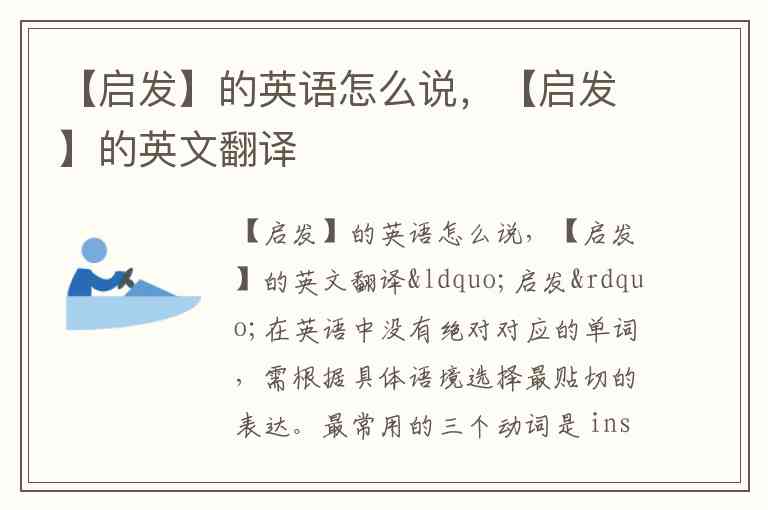 “启发”在英语中没有绝对对应的单词,需根据具体语境选择最贴切的表达。最常用的三个动词是 inspire、enlighten 和 arouse,它们分别侧重不同维度的“启发”含义: