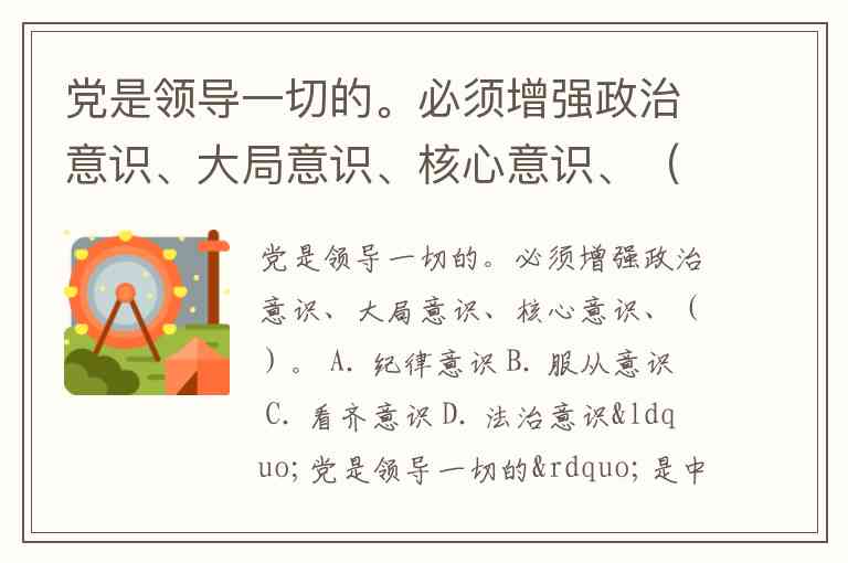 党是领导一切的。必须增强政治意识、大局意识、核心意识、()。 A. 纪律意识 B. 服从意识 C. 看齐意识 D. 法治意识