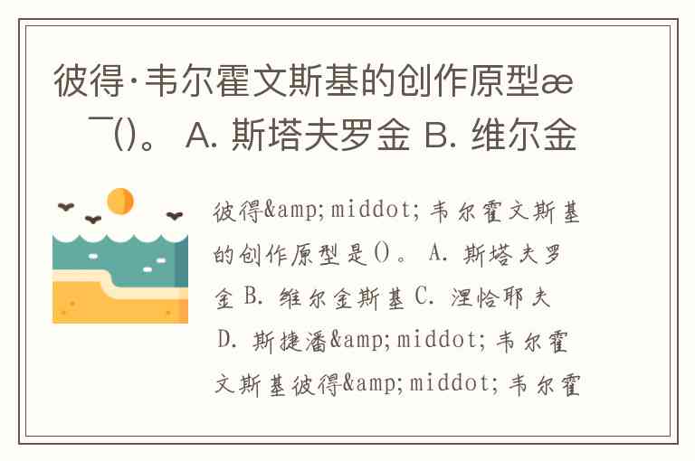 彼得·韦尔霍文斯基的创作原型是()。 A. 斯塔夫罗金 B. 维尔金斯基 C. 涅恰耶夫 D. 斯捷潘·韦尔霍文斯基