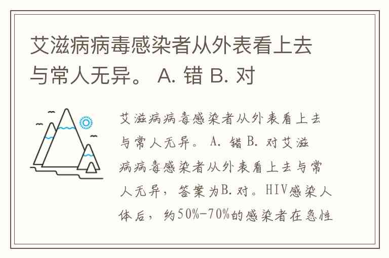 艾滋病病毒感染者从外表看上去与常人无异,答案为B.对。