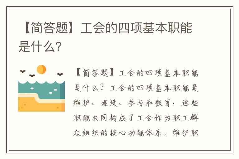 这四项职能相互支撑:维护职能保障职工基本权益,建设职能夯实发展基础,参与职能拓宽民主渠道,教育职能提升主体能力。在实践中,工会通过开展"送温暖"活动、监督工伤事故处理、组织文体活动等具体工作,将这些职能转化为服务职工的实际行动,成为连接党和职工群众的重要桥梁。当前,随着新业态劳动者权益保障需求的增加,工会如何在数字化时代创新履职方式,将是其职能延续与发展的关键课题。