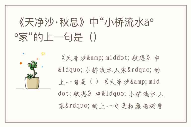 《天净沙·秋思》中“小桥流水人家”的上一句是()