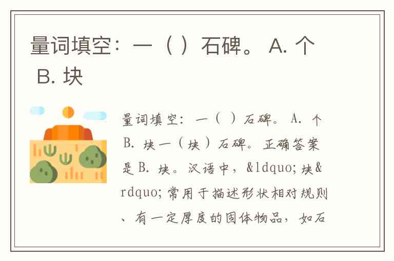 量词填空:一( )石碑。 A. 个 B. 块