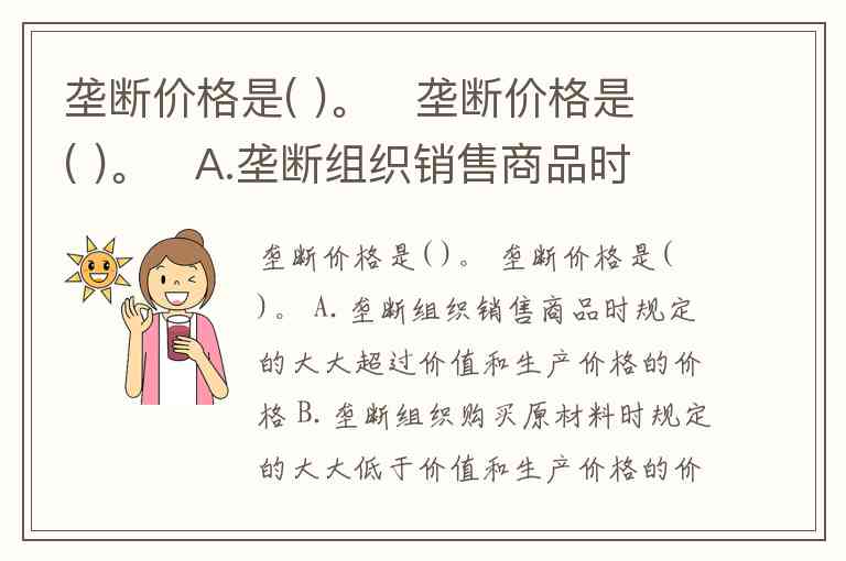 垄断价格是( )。 垄断价格是( )。 A.垄断组织销售商品时规定的大大超过价值和生产价格的价格 B.垄断组织购买原材料时规定的大大低于价值和生产价格的价格 C.成本价格加超额利润 D.成本价格加垄断利润 E.成本价格加平均利润
