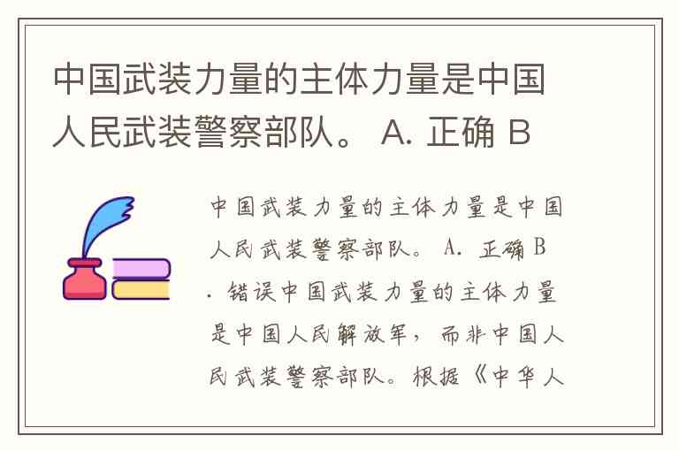 中国武装力量的主体力量是中国人民武装警察部队。 A. 正确 B. 错误