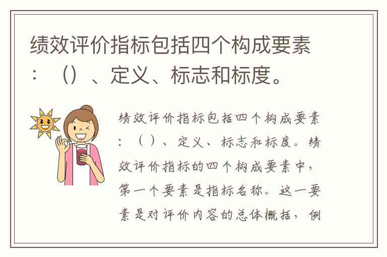 绩效评价指标包括四个构成要素:()、定义、标志和标度。