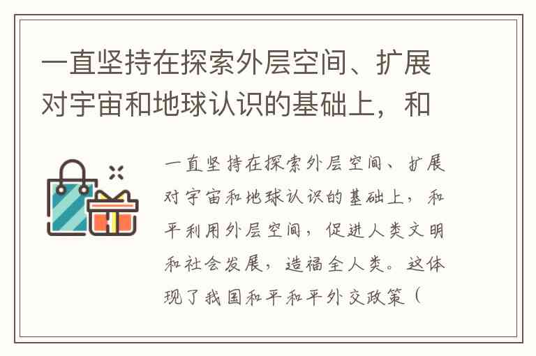 一直坚持在探索外层空间、扩展对宇宙和地球认识的基础上,和平利用外层空间,促进人类文明和社会发展,造福全人类。这体现了我国和平和平外交政策( ) A. 维护世界和平、促进共同发展的宗旨 B. 坚持对外开放,加强国际交往的基本国策 C. 促进世界和平与发展的首要外交目标 D. 维护国家独立和主权的基本目标