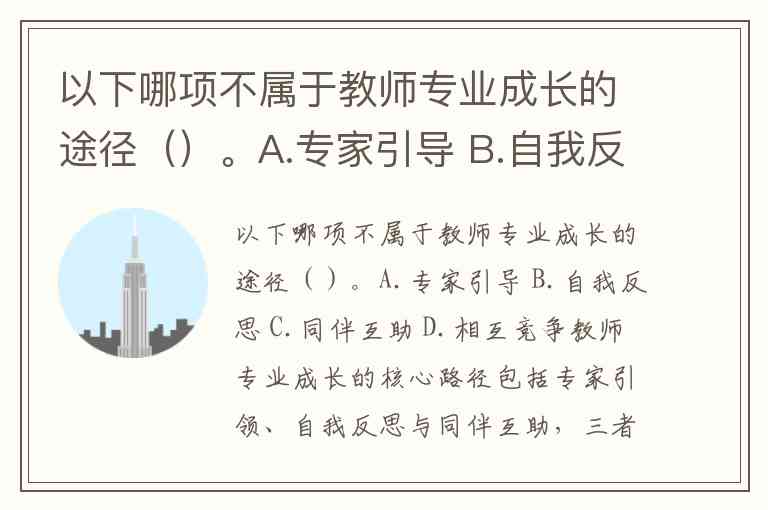 以下哪项不属于教师专业成长的途径()。A.专家引导 B.自我反思 C.同伴互助 D.相互竞争